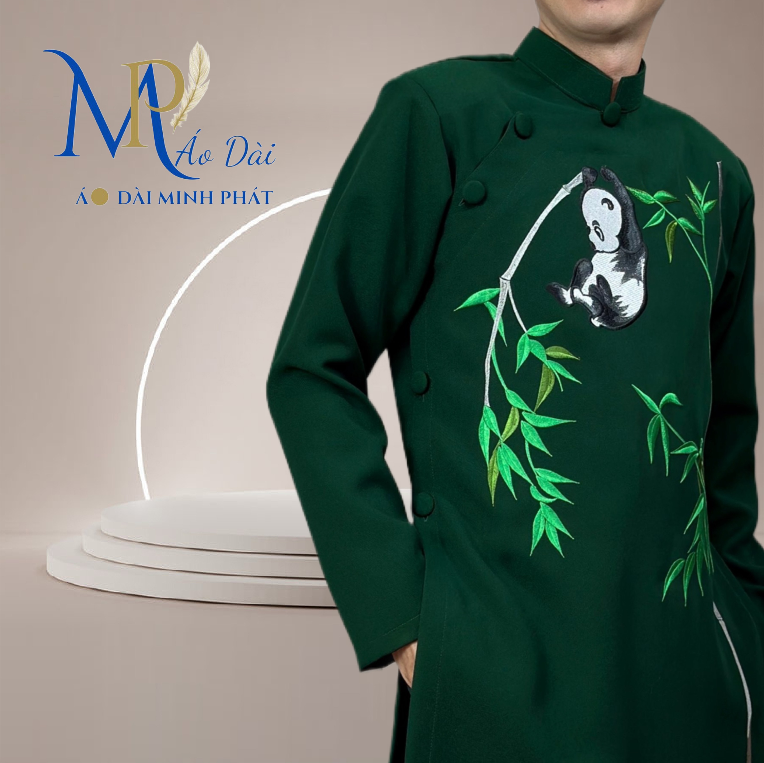 Áo Dài Cách Tân Nam Vải Tuyết Mưa Cao Câp Với Hoạ Tiết Thêu Gấu Trúc Đơn giản, Tinh Tế Sang Trọng MPT1026